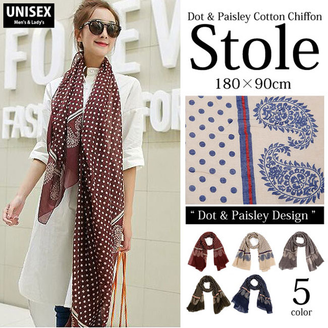 価格: 1,680円 レビュー評価:4.0 レビュー数:1 全5色! ドット柄とペイズリー柄のお洒落なシフォンストール! ユニセックスデザインなのでプレゼントなどにも重宝します! 大きめのデザインで超重宝します! コットン素材で付け心地も最高です! ふんわりとしたエアリー感から生まれる綺麗なラインで身体を優しく包み込みます。 安心感のある大判サイズでアレンジも自由自在。 薄手のさらっとした肌触りでストレスフリーの着用感。 紫外線対策にも冷房対策にもピッタリな逸品です。 たっぷり大判サイズで、ショールやひざ掛けとしても使えるマルチストールです! シンプルなTシャツや、デニムに合わせるだけ、華やかに着映えすること間違いなし♪ コンパクトで軽量なので、持ち運びしやすく、冷え性の方にもおススメ! 外出時の紫外線UV対策、ビーチ、リゾートでの日焼け防止やオフィス、映画館や車内で膝掛けとして冷房対策にも役立つ! ※UVカット機能はございませんので、予めご了承く (更新日時:2018/02/03 14:15) Supported by 楽天ウェブサービス |